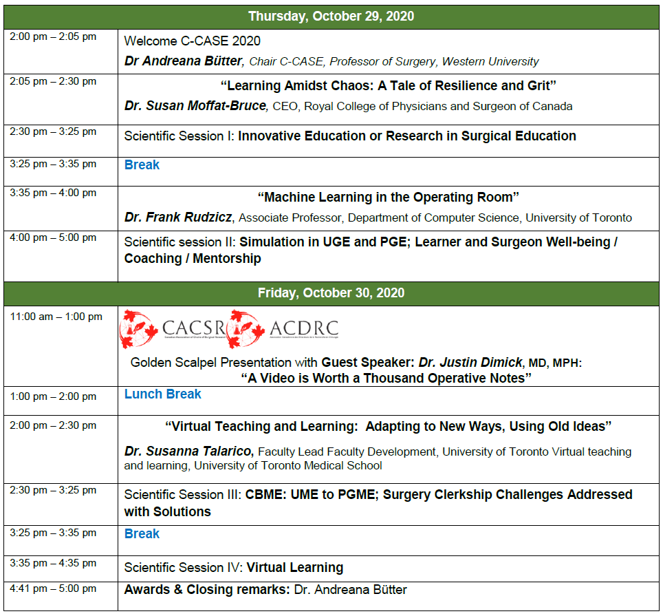 Click here to view the abstracts presented at C-CASE 2020 in this month’s supplement of the Canadian Journal of Surgery